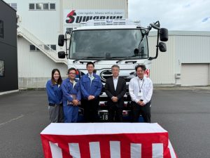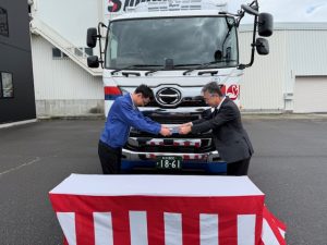 納車式には社員が立ち会い、今後の安全運行と更なる業務発展を祈念いたしました。 引き続き、安全運転を第一に、新車輌を活用して業務に取り組んでまいります。 お元気お届けサン!!